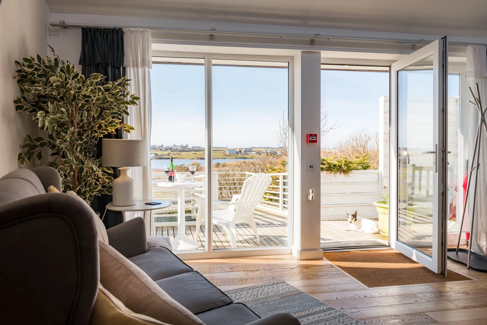 The apartment is wonderfully spacious, featuring a vaulted ceiling, floor-to-ceiling windows, and wooden floors, creating a bright and airy feel. The open-plan living area and kitchen are beautifully appointed with modern amenities, ensuring a comfortable stay. The apartment benefits from its own independent entrance, private patio, incredible closed deck, and private parking. It is pet-friendly and wheelchair accessible, making it suitable for all guests.