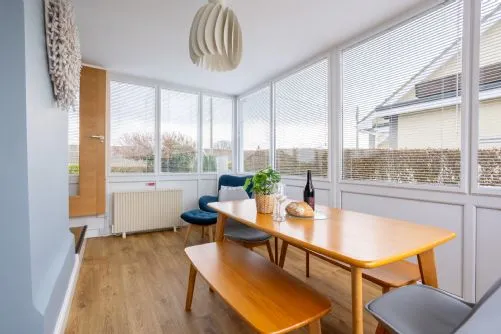 Step inside, and you'll be greeted by a spacious and inviting layout. The open-plan conservatory dining area, bathed in natural light, serves as the heart of the home. Here, you can gather for family meals, relax with a good book, or catch up on your favourite shows on the Smart TV. The well-equipped kitchen ensures cooking is a breeze, whether you're whipping up breakfast or preparing a feast. The kitchen also includes an air fryer for quick and convenient meals.