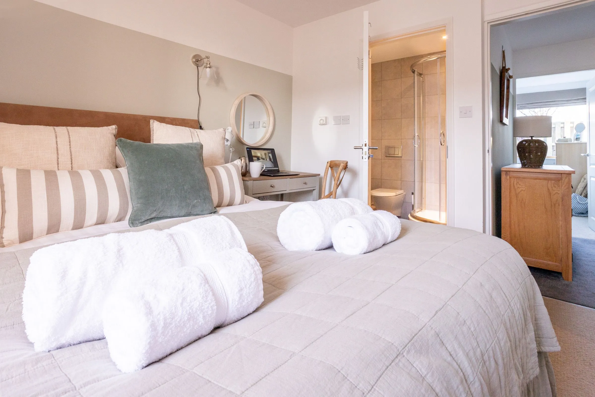 Bedrooms: One king bedroom with en-suite shower room, one double bedroom, and two twin bedrooms